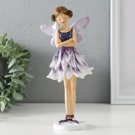 • Фигурка полистоун Девочка-бабочка в сиреневом платье, с птичкой на плече, 9.5?9?21 см
