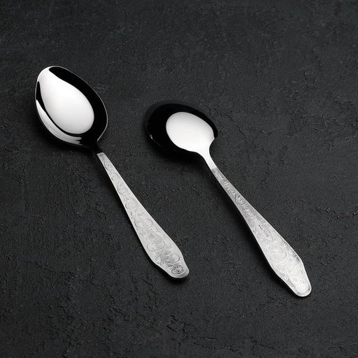 Цена за 6 шт. Ложка столовая «Дубрава», длина 19.6 см, толщина 2 мм, цвет серебряный
