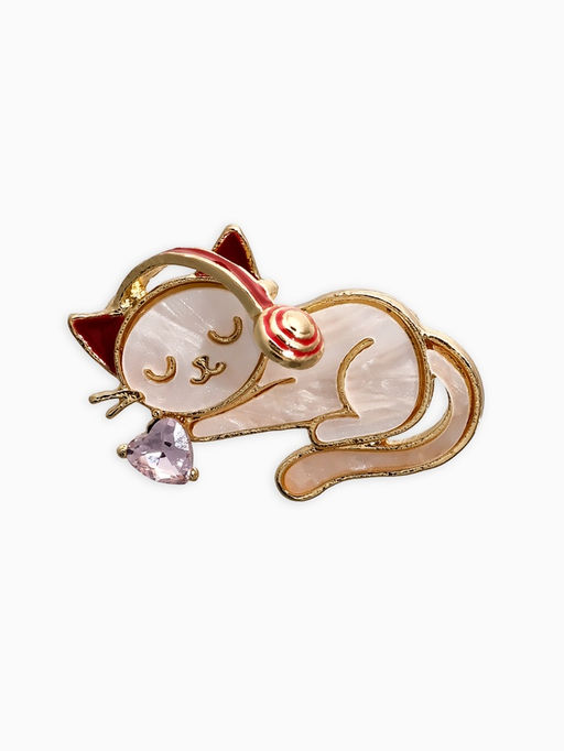 • Брошь перламутровый "Котёнок" в наушниках, цвет белый в золоте