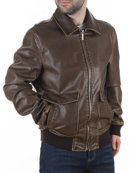 • 257994137 BROWN Куртка мужская демисезонная (эко-кожа)