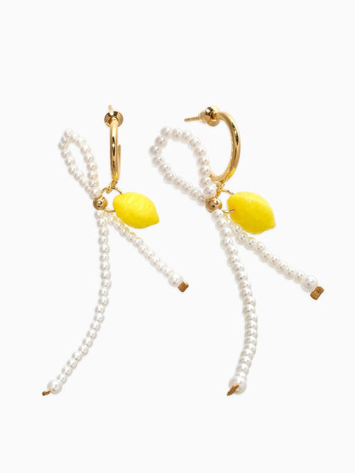 • Серьги "Лимоны с бантиком", цвет жёлто-белый  в золоте №2