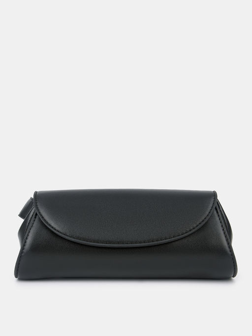 Черная сумка-багет из искусственной кожи актуальная новинка сезона. Компактная, но вместительная модель позволяет удобно разместить все необходимые мелочи. Широкий перекидной клапан фиксируется на магнитную кнопку, а несъемный длинный ремешок регулируется по длине.