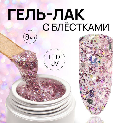 Гель лак для ногтей, с блёстками, трехфазный, 8 мл, LED/UV, розовый