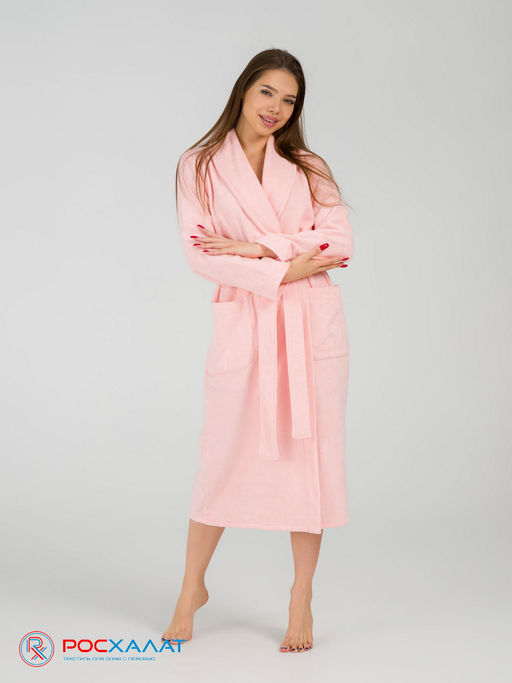 • Женский махровый халат с шалькой розовый МЗ-02 (7)