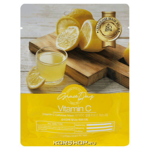 • Тканевая маска для лица с витамином С Grace Day, Корея, 27 мл Акция