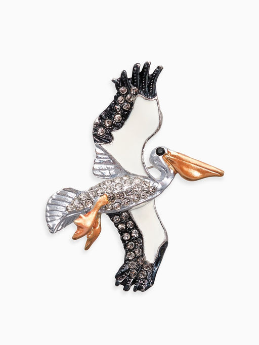 • Брошь «Пеликан», разноцветная в серебре