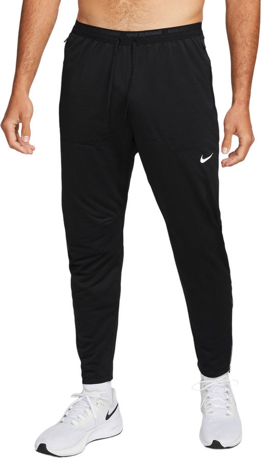 Трикотажное полотно приятно на ощупь. В правом кармане имеется внутренний сетчатый карман, в который можно положить ключ или карточку. Сетчатые вставки в верхней части спины, на задней стороне коленей, на щиколотках и по внутреннему шву обеспечивают воздухопроницаемость и свободу движений. Молнии на кромках штанин позволяют легко надевать и снимать их поверх обуви. Эластичный пояс "Nike Running" со шнурком-утяжкой. Боковые карманы на молнии.