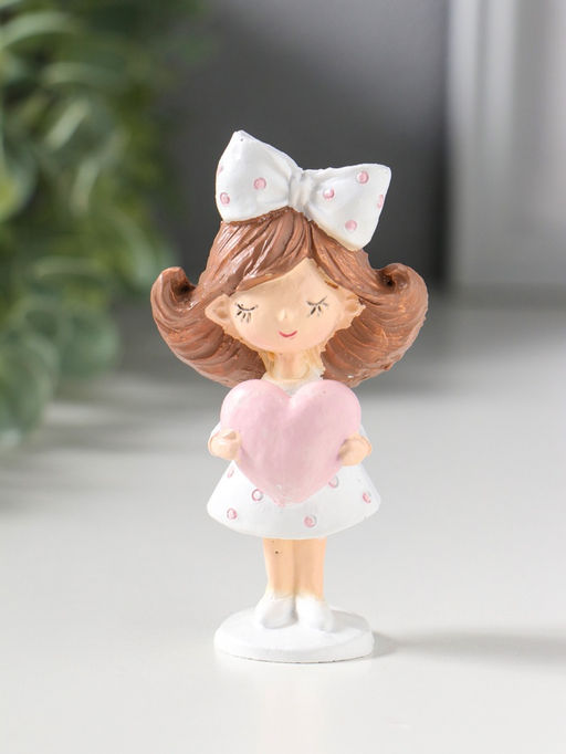 Фигурка полистоун «Девочка с большим бантом в волосах, держит сердце», 4.7×3×9 см