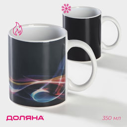 Кружка - хамелеон Доляна «Радужные волны», 350 мл, керамика, чёрная