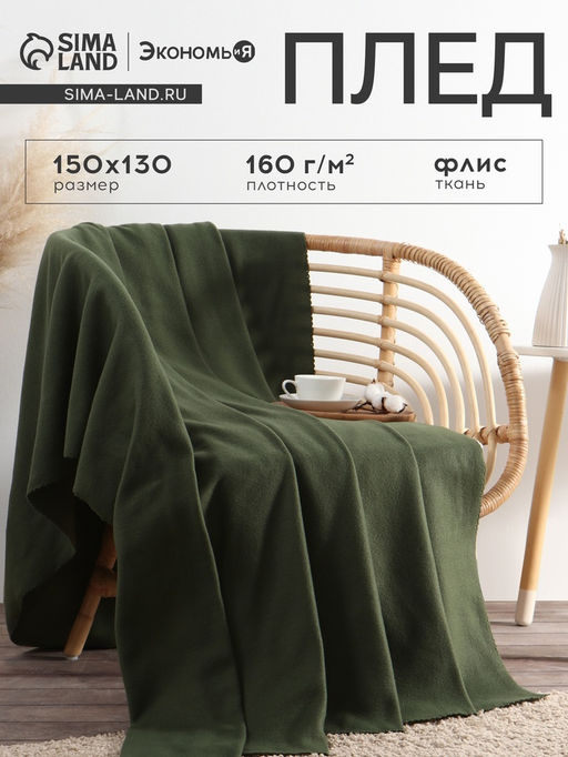 • Плед "Экономь и Я" Темно-зеленый 150*130 см, пл.160 г/м2, 100% п/э