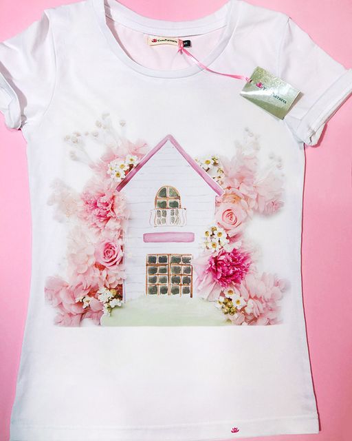 Наши футболки защищены от копий, розовым, слегка заметным кристаллом Swarovski на логотипе.