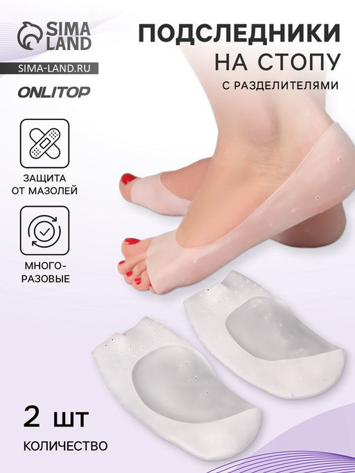 Подследники на стопу с разделителями, универсальные, силиконовые, 18.5×9 см, пара, белые