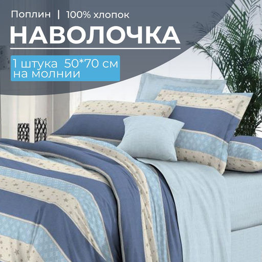Артикул: Наволочка 50*70 см, на молнии, поплин (Морской стиль (основа))