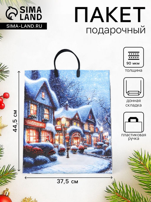 Создайте волшебство рождественского подарка! Подарочный пакет «Рождественская ночь» — это просторный и надежный способ упаковать даже самый крупный сюрприз. Его классический зимний дизайн и высокая прочность превращают вручение презента в особенный момент.Большой размер для объемных подарков: Габариты 38×45 см и донная складка создают дополнительное пространство. В пакет помещаются кукольные домики, наборы конструкторов, мягкие игрушки или несколько коробок сладостей.Пластиковая ручка с высокой нагрузкой: Пакет выдерживает до 10 кг. Ручка удобно лежит в руке и не деформируется под весом содержимого — подарок дойдет до получателя в идеальном виде.Плотный материал ПВД: Толщина 90 мкм обеспечивает прочность на разрыв. Пакет не порвется от острых углов коробок и сохранит форму даже при высокой нагрузке.Универсальный новогодний дизайн: Тематический рисунок подходит для подарков девочкам, мальчикам и взрослым. Он создает праздничное настроение без привязки к конкретному символу года.Идеальная упаковка для важных подарков: Этот пакет сочетает практичность и праздничный вид. Он надежно защитит содержимое и станет завершающим штрихом, который подчеркнет ценность вашего внимания. «Рождественская ночь» поможет сделать праздник по-настоящему волшебным. Для кого: Для мальчика. Для кого: Унисекс. Для кого: Для девочки. Размер, см: 37.5 х 44.5. Рекомендуемая нагрузка, кг: 10. Толщина, мкм: 90. Тематика: Новогодняя. Рисунок: Да. Символ года: Нет. Тематика праздника: Новый год. Расширение: Донная складка. Вид ручки: Пластиковая. Дизайн: С рисунком, надписью. Бесплатная доставка: Да. Примечание: Размер товара может отличаться от заявленного на ± 3 см..
