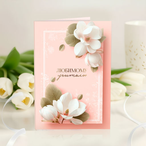 • Открытка 4 шоколадки "Любимому учителю (розовая с цветами)"
