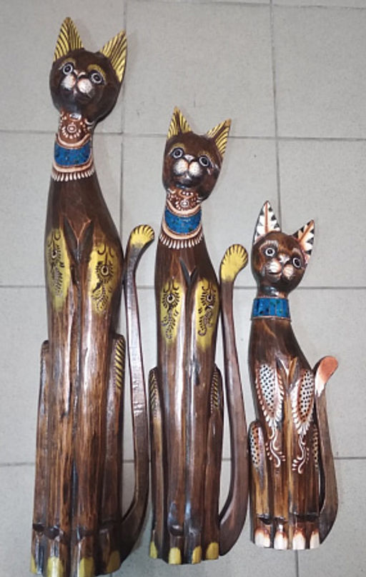 Статуэтки кошек купить. Деревянные статуэтки из Индонезии купить в нашем интернет магазине сувениров. Набор деревянных кошек из Индонезии - это сувенир, который станет истинным украшением любой комнаты, любого помещения. Это замечательный подарок, верный способ доставить радость родным и близким. Кошка в Индонезии считается символом долголетия и царственности. Изумительная работа мастеров настолько утончённая и изысканная, что Вам захочется подарить такой сувенир своим родным, близким, друзьям или любимой женщине. Стоит отметить, что сделав такой подарок себе и своей семье Вы также не пожалеете, поскольку именно кошка характеризует спокойную и теплую атмосферу в доме, а также домашний уют и комфорт. Именно об этом не забывают индонезийские мастера, создавая свои милые и забавные шедевры.