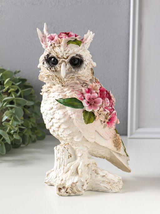 Фигура полистоун «Белая сова в цветах», 13×10×22 см