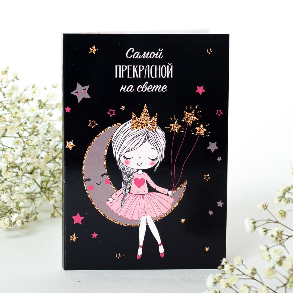 • Открытка 4 шоколадки "Самой прекрасной на свете" (девочка со звёздами)
