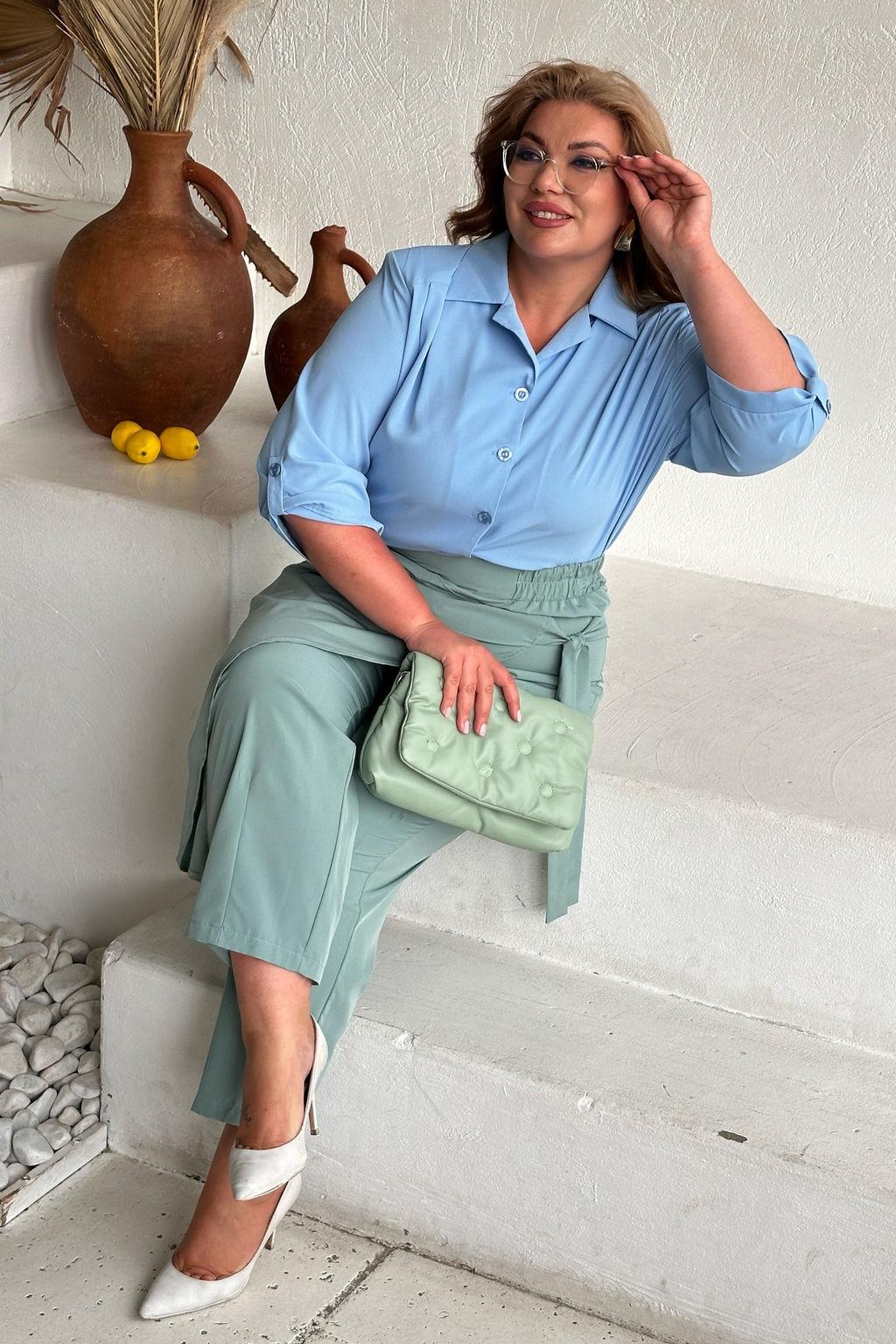 Брюки мокрый шелк хакама полынь