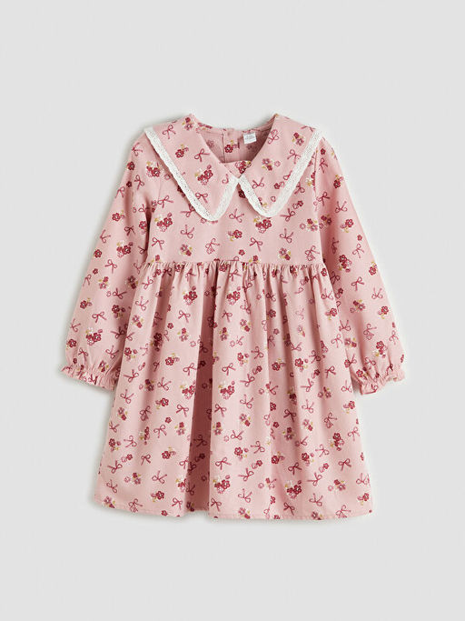Bebe Yaka Desenli K?z ?ocuk Gabardin Elbise