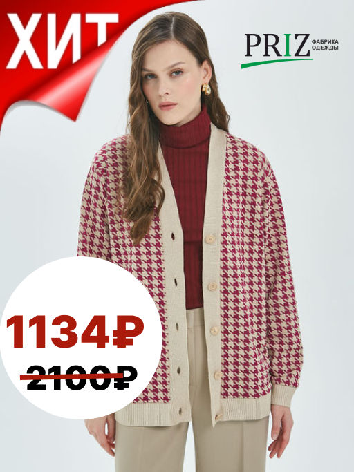 Жакет трикотажный. Модель с застёжкой на петли и пуговиы. Манжеты, пояс и планка по краю борта и горловины выполнены из подвязов.