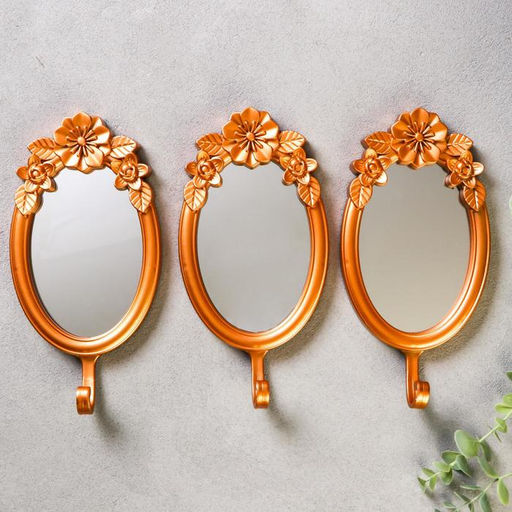 Декоративные крючки настенные с зеркалом «Цветочные», набор 3 шт., 38×25×4.2 см