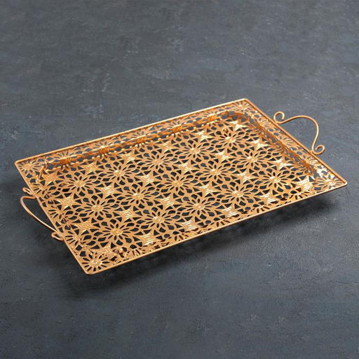 • Поднос сервировочный «Золотые цветы», 50×29×6 см, металл, золотистый