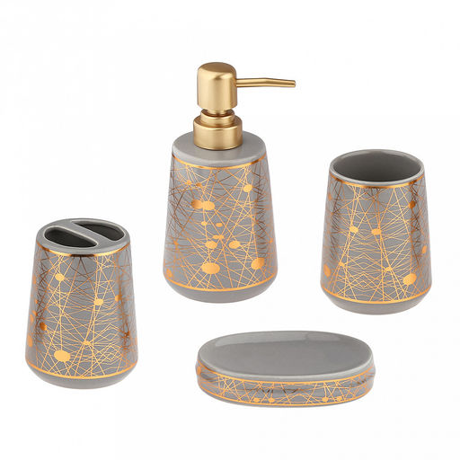 Набор для ванной "Золотые нити" 4 предмета: дозатор для мыла 360мл, д6,4см, h12,3см, основание д7,8см; мыльница 12х8х2,6см; стакан для зубных щеток с разделителем 350мл, д6,6см, h11см, основание д8см, стакан 350мл, д6,6см, h10,3см, основание д8см; фу