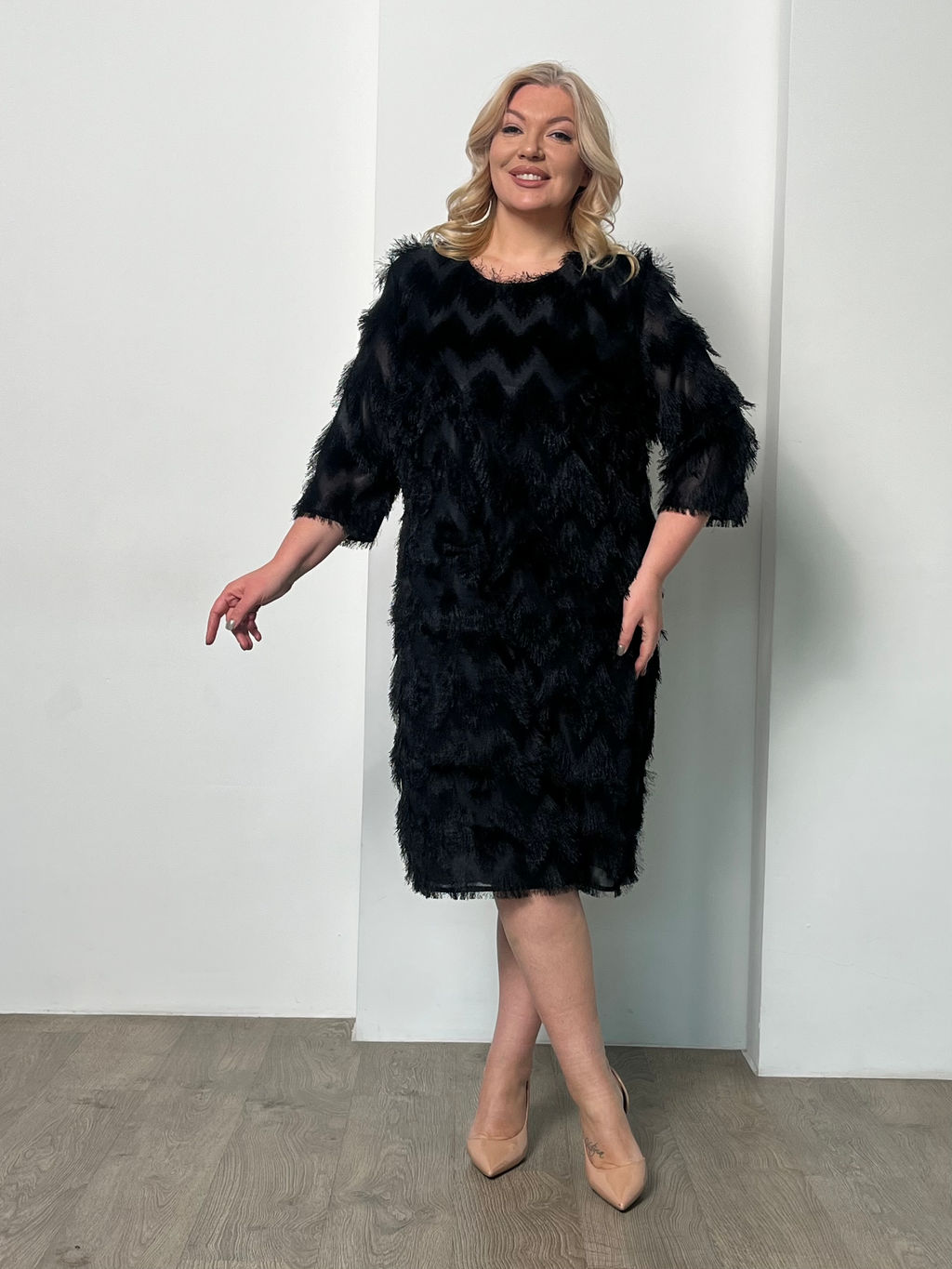 Платье с бахромой черное­