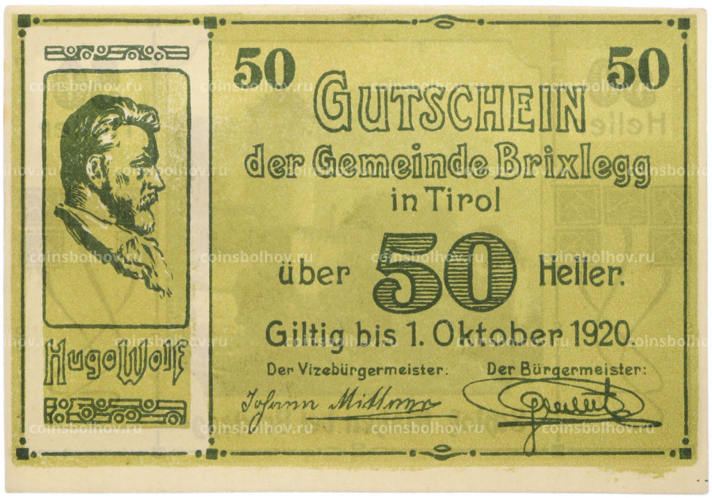 Банкнота 50 геллеров 1920 года Австрия община Брикслегг в Тироле (Нотгельд)