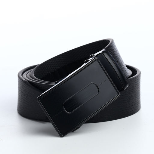 Ремень мужской, 120×3.5 см, металлическая пряжка автомат, регулируемая длина, чёрный