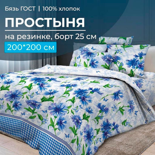 Артикул: Простыня на резинке 200*200 см, бязь ГОСТ, борт 25 см (Корнфлауэр)