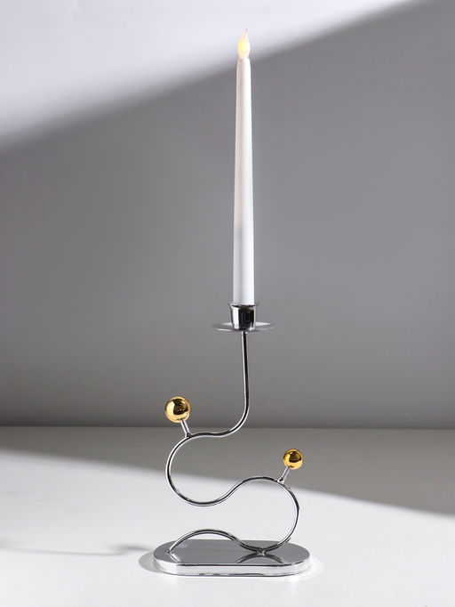 • Подсвечник на 1 свечу «Линия и шарики», металл, под серебро с золотом, d=2.5 см, 14.5×7.5×26 см