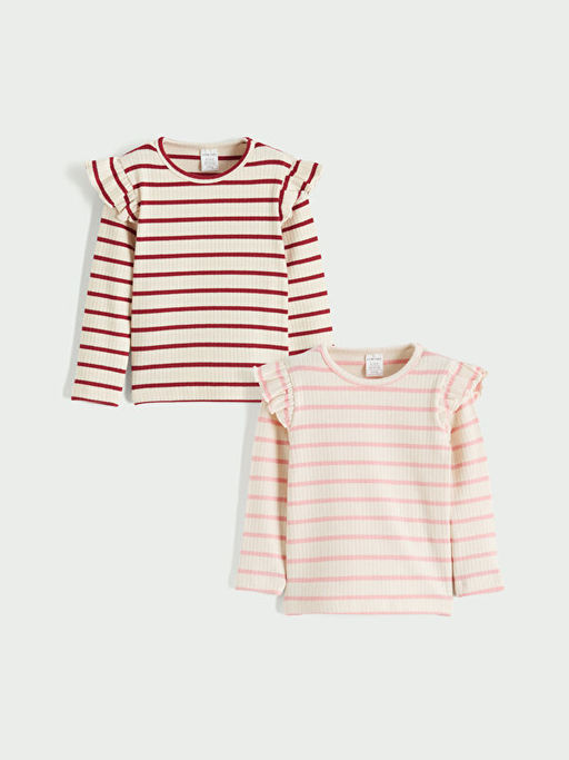 Bisiklet Yaka F?rf?rl? ?izgili K?z Bebek Ti??rt 2li