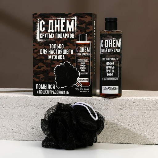 • Подарочный набор С днем крутых подарков, гель для душа 250 мл и мочалка для тела, HARD LINE