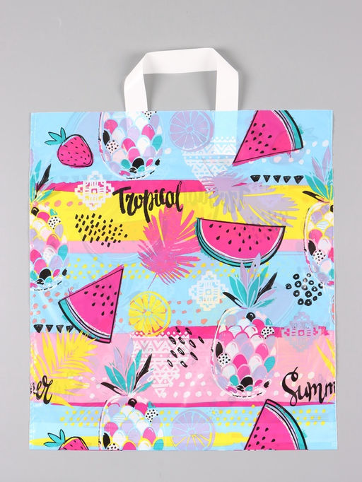 Цена за 50 шт. Пакет "Тропические фрукты", полиэтиленовый с петлевой ручкой, 38 х 42 + 3 см, 37 мкм