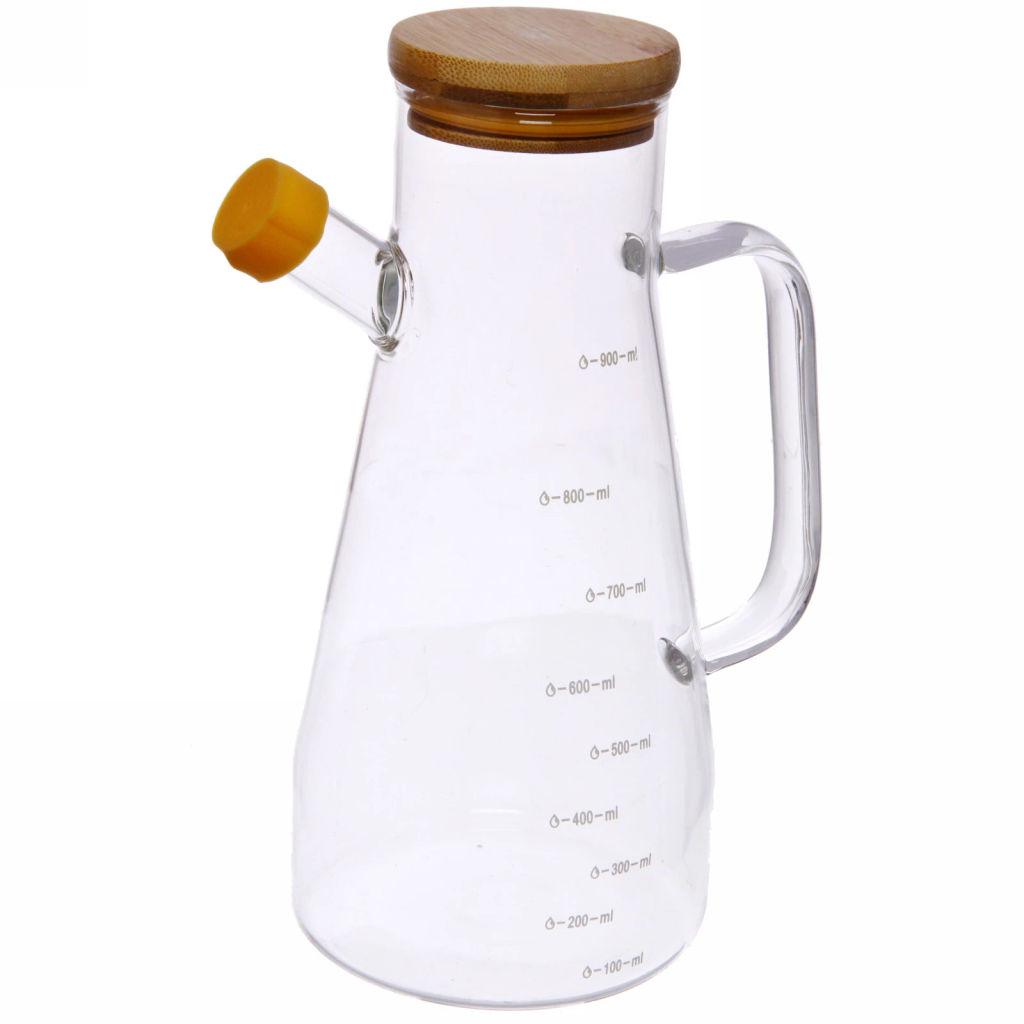 • Бутылка стеклянная для специй 900мл "Хай-Тек" с бамбуковой крышкой