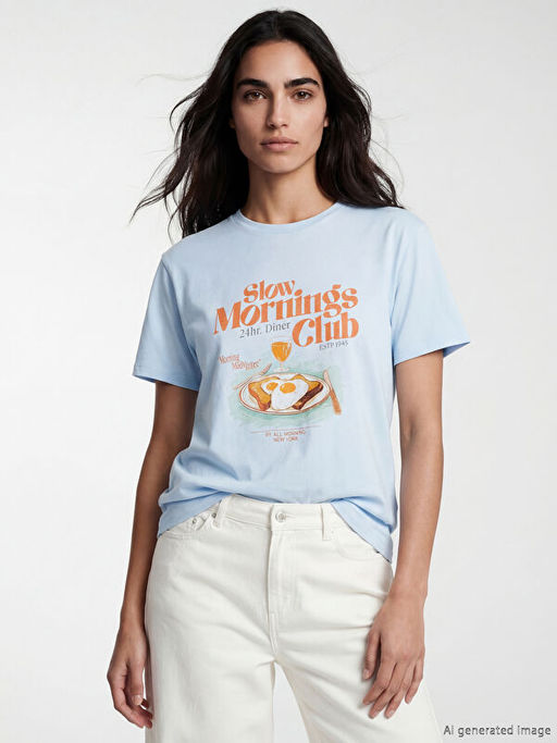 • Bisiklet Yaka Bask?l? Kad?n Ti??rt