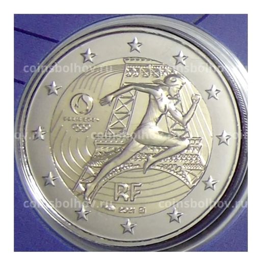 Монета 2 евро 2021 года Франция XXXIII летние Олимпийские игры, Париж 2024 (в фиолетовом блистере)