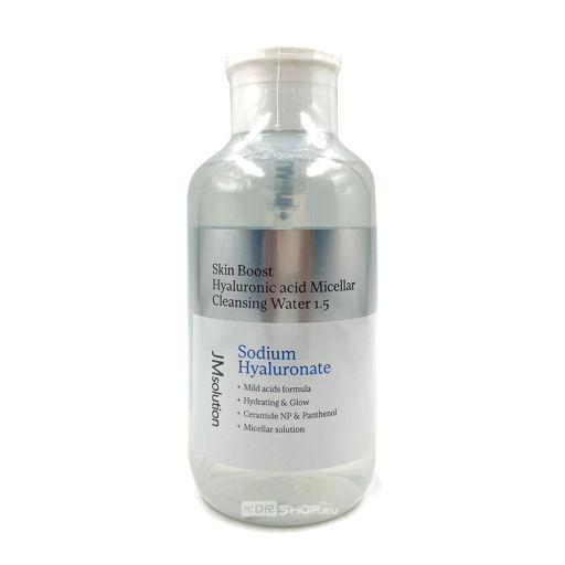 Мицеллярная вода с гиалуроновой кислотой Skin Boost Hyaluronic Acid Micellar Cleansing Water 1.5 JMsolution поможет очистить кожу от макияжа, глубоко увлажнить ее, восстановить водно-липидный баланс, устранить раздражения, зуд, покраснения, воспаления и ощущение жжения на коже, успокоит чувствительную кожу и насытит эпидермис минералами и витаминами благодаря наличию в составе ниацинамида, центеллы азиатской и пантенола. Мицеллярная вода не нарушает кислотно-щелочной баланс кожи, при этом удаляет полностью даже водостойкий макияж, включая солнцезащитные и тональные средства. Мицеллярная вода с гиалуроновой кислотой помогает поддерживать оптимальный уровень увлажненности кожи, нейтрализует и успокаивает любые воспаления и подходит для всех типов кожи, включая сухую, проблемную, чувствительную и жирную. Это эффективное средство не только для демакияжа и очищения, но и для поддержания здоровья кожи в целом.