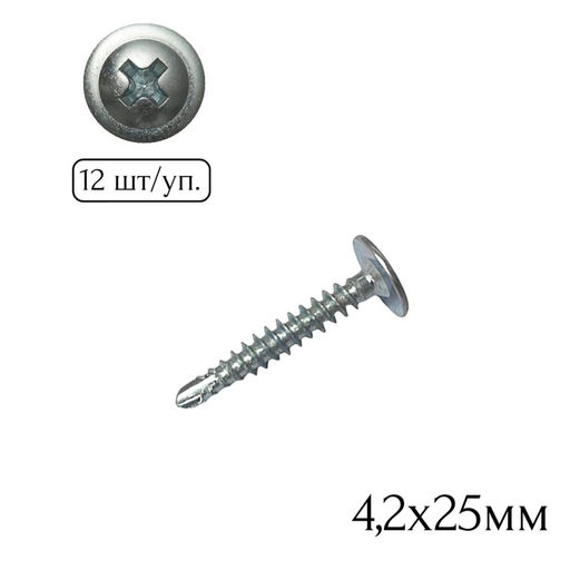• Саморез полусфера-прессшайба (сверло) 4,2х25мм (12шт.)