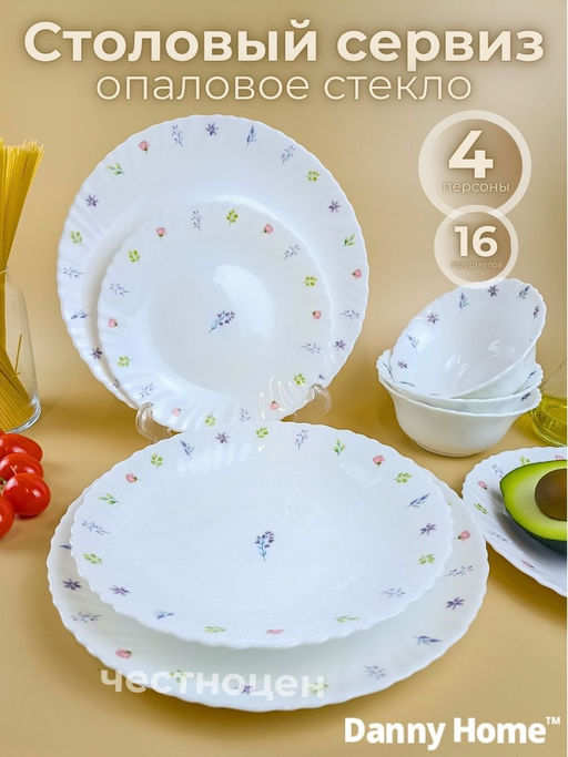Необходимый инвентарь для стола и принадлежности для сервировки сделают ваш стол красивее и уютнее. Этот столовый сервиз прекрасно подойдет для специальных случаев и повседневного использования.Набор столовый на 4 персоны - это идеальное решение, если вы ищете красивый, элегантный и практичный комплект посуды для своего дома. Вы получаете всё, что нужно для стильной и элегантной сервировки стола.­