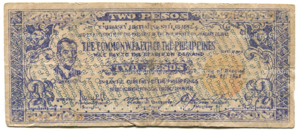 • Банкнота 2 песо 1942 года Филиппины (Негрос, Администрация США)