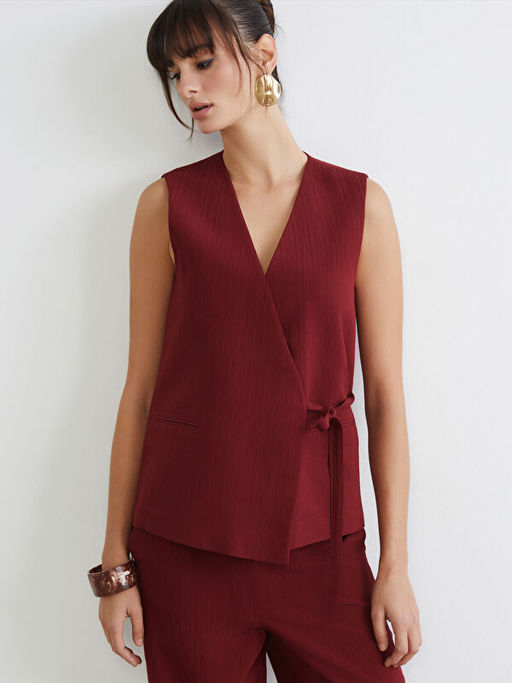 • Kruvaze Yaka Dokulu Kad?n Klasik Yelek