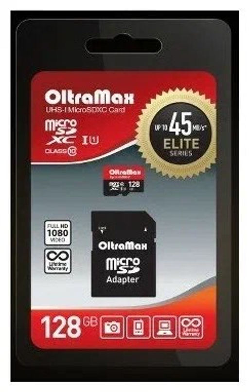 Карта памяти Micro-SDXC 128Гб "OltraMax Elite" Class10 UHS-I, + адаптер SD