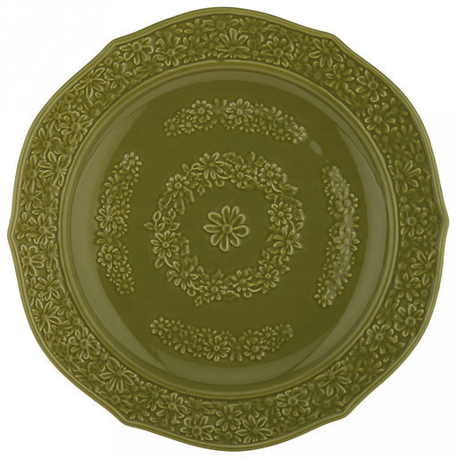 • "Русское поле" Тарелка мелкая фарфоровая д250мм, h25мм, волнистый край, фактурный глянец, зеленый, в коробке (Китай)