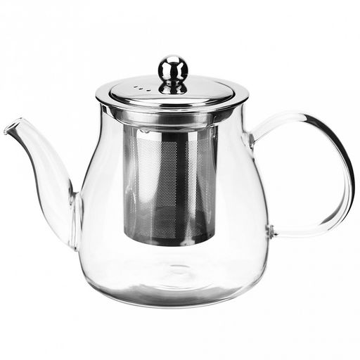 • Чайник заварочный 600мл, д11см, h11см, стеклянная колба, ситечко и крышка нержавеющая сталь "Усадьба" д/горла 7,8см д/основания-9,8см, в подарочной коробке (Китай)