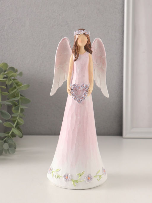 • Фигурка полистоун Девушка-ангел в нежно-розовом платье с венком-сердце, 8.5?6?21.5 см