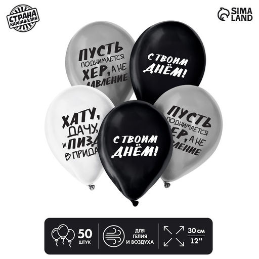 Воздушные шары латексные 12" «С твоим днём», 50 шт., 18+
