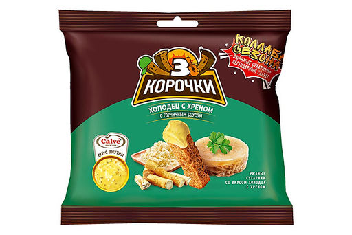 Состав продукта: Сухарики ржаные со вкусом холодца с хреном. Состав- мука ржаная, мука пшеничная, вода питьевая, масло подсолнечное рафинированное дезодорированное, ароматизатор (соль, декстроза, мальтодекстрин, усилители вкуса и аромата (Е621, Е627, Е631), горчичный порошок, вкусоароматические вещества, регуляторы кислотности (Е330, Е262(ii))), дрожжевые экстракты, натуральные вкусоароматические вещества); соль, дрожжи хлебопекарные. Возможно наличие ракообразных, рыбы, молока, сельдерея, сои и продуктов их переработки.